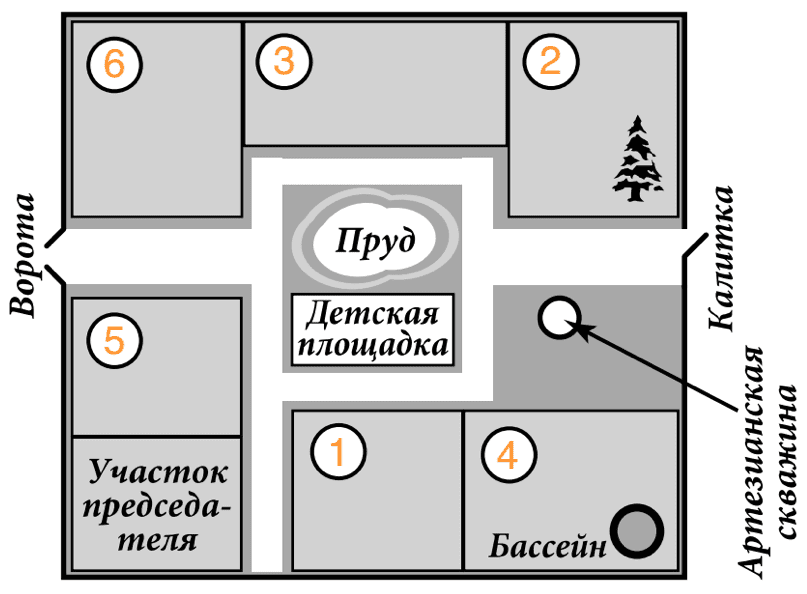 Если встать около скважины лицом к пруду, то справа будет большая ель на участке Семёна Львовича. Он живёт на даче круглый год. А около самого пруда живёт сосед Семёна Львовича дядя Миша. Отчества дяди Миши я не знаю. Спрошу у бабушки. Наш дом ближе всех к детской площадке, когда я была маленькая, я там играла и качалась на качелях. Наш сосед Иван Михайлович у себя на участке устроил бассейн, и иногда мы туда ходим купаться, когда жарко.