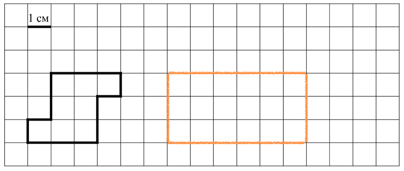 2) На клетчатом поле рядом с фигурой нарисуй прямоугольник, периметр которого на 4 см больше периметра данной фигуры.
