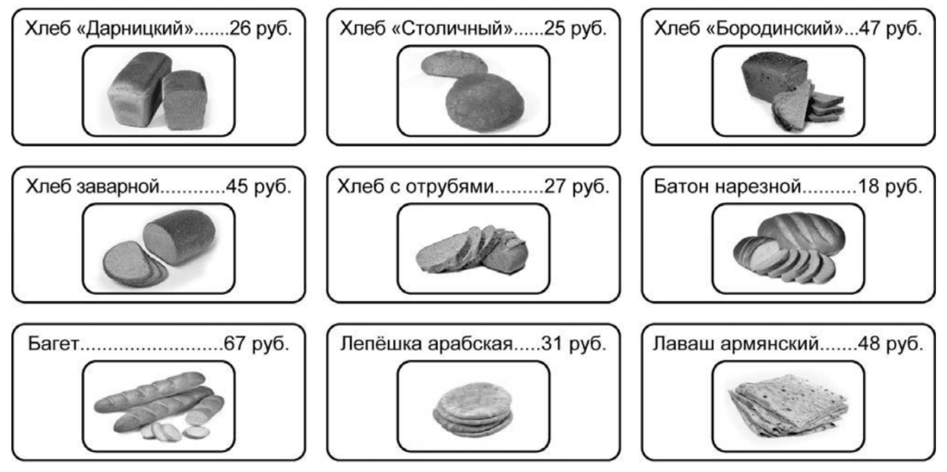 3. На рисунке показаны цены на хлебобулочные изделия в магазине. Сколько всего рублей надо заплатить за три буханки «Дарницкого» и один лаваш?
