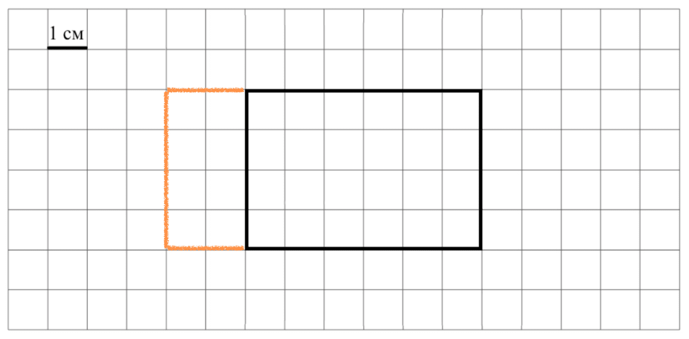 2) Изобрази на рисунке прямоугольник, имеющий площадь на 8 см2 больше исходного, так, чтобы весь исходный прямоугольник был его частью.