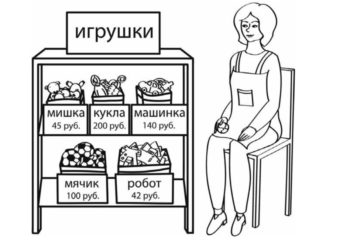 3. Рассмотри рисунок и ответь на вопрос: сколько рублей сдачи получит покупатель, расплатившийся за одного мишку и одного робота купюрой в 100 руб.?