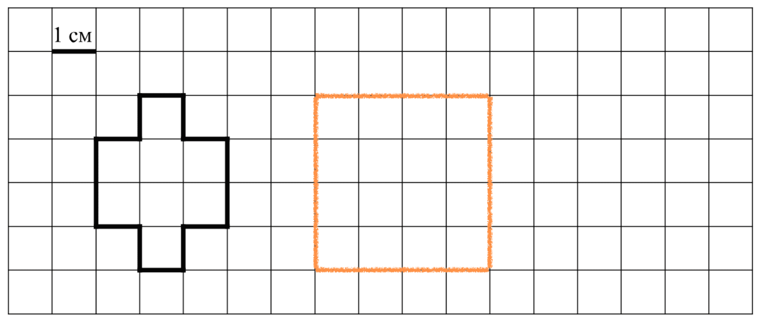 2) На клетчатом поле рядом с фигурой нарисуй прямоугольник, периметр которого на 2 см больше периметра данной фигуры.