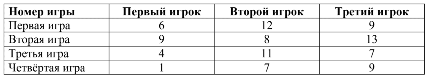6. Тренер по баскетболу фиксировал, сколько точных бросков сделал по кольцу в разных играх каждый из трёх центральных нападающих. Используя таблицу, ответь на вопросы.